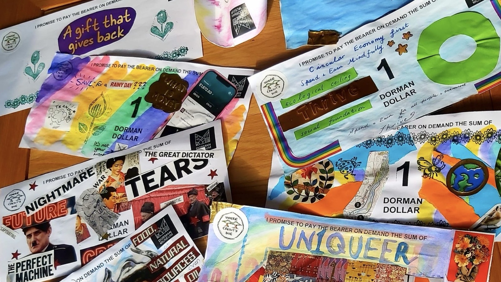 As Robyn Ollett and I wrote for Money on the Left last August, “the stories we tell about our communities and the people that build them are intimately bound up with the way we account for them in monetary terms.” We have since launched the Where Credit’s Due project in Middlesbrough with the aim of building intersectional solidarity and fostering conversations about monetary design in both visual and systemic senses. We began with a screening of Maren Poitras’s 2023 documentary Finding the Money – in which Lua K. Yuille observes that: “If money is natural, who has the money is natural as well” – and followed this with a series of workshops at Middlesbrough’s Dorman Museum, where our participants have experimented with designs for their own “Dorman Dollars” (see the image above). As these events have explored, neither the aesthetics nor the politics of monetary design are natural or inevitable. In place of the orthodox story, which tells us that the suffering of marginalised people and neglected places is necessary and that austerity’s exclusionary logic is the mark of responsible government, we have been learning how to tell new stories of money’s creative potential. In place of the phantom of inclusion-as-zero-sum-competition and the fear of democracy that haunts Nigel Farage, we offer Democratic Public Finance’s vision of ecosocial justice, which refuses to imagine false binary oppositions between wildlife and people, between men and women, or between the past and the future.